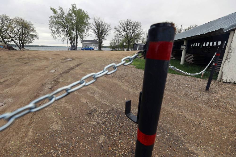 Chained gates stand in Ninette outside the boat launch onto Pelican Lake in 2025. The gates were installed at all launches around the lake by the Rural Municipality of Prairie Lakes as part of a plan to regulate access to the lake. The plan is set to continue in 2026 as the municipality wants to be proactive in keeping aquatic invasive species out. (Connor McDowell/Brandon Sun files)